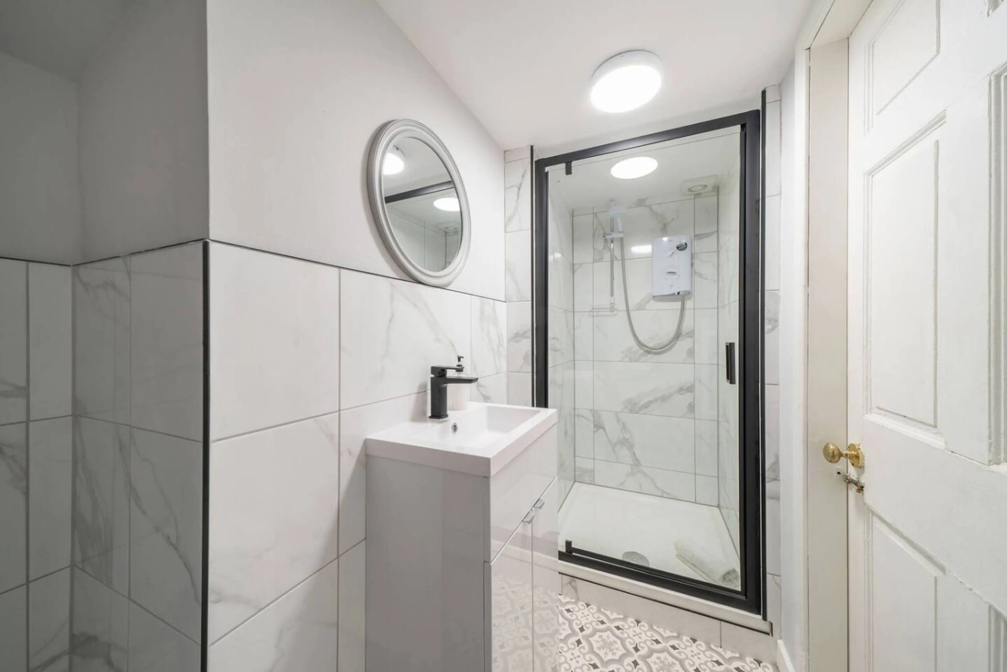 The property features two double bedrooms, each furnished for comfort and practicality. The master bedroom benefits from an en-suite shower room, while the main bathroom includes a large walk-in shower, catering to guests’ needs with both style and functionality.Situated within a charming block of f...