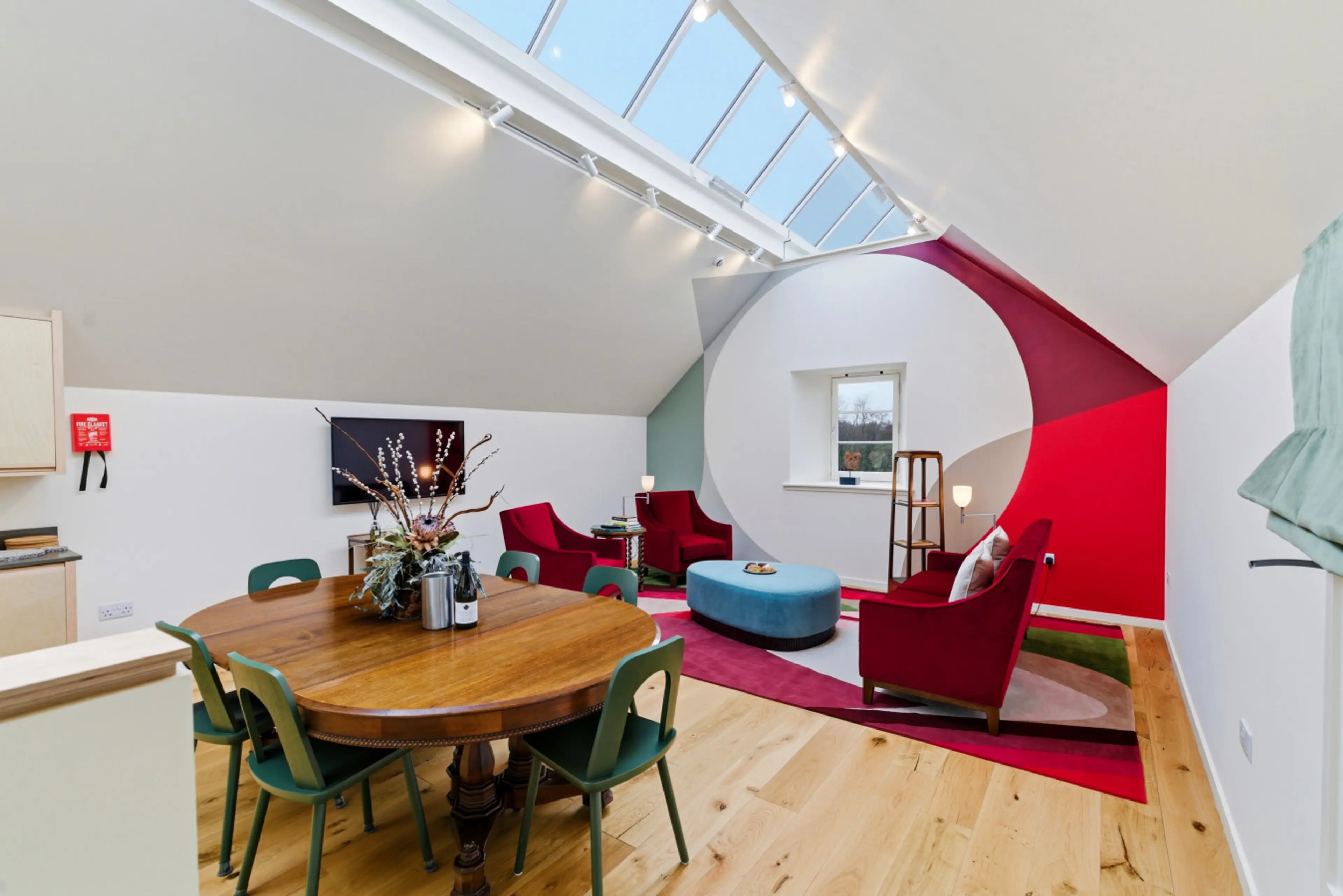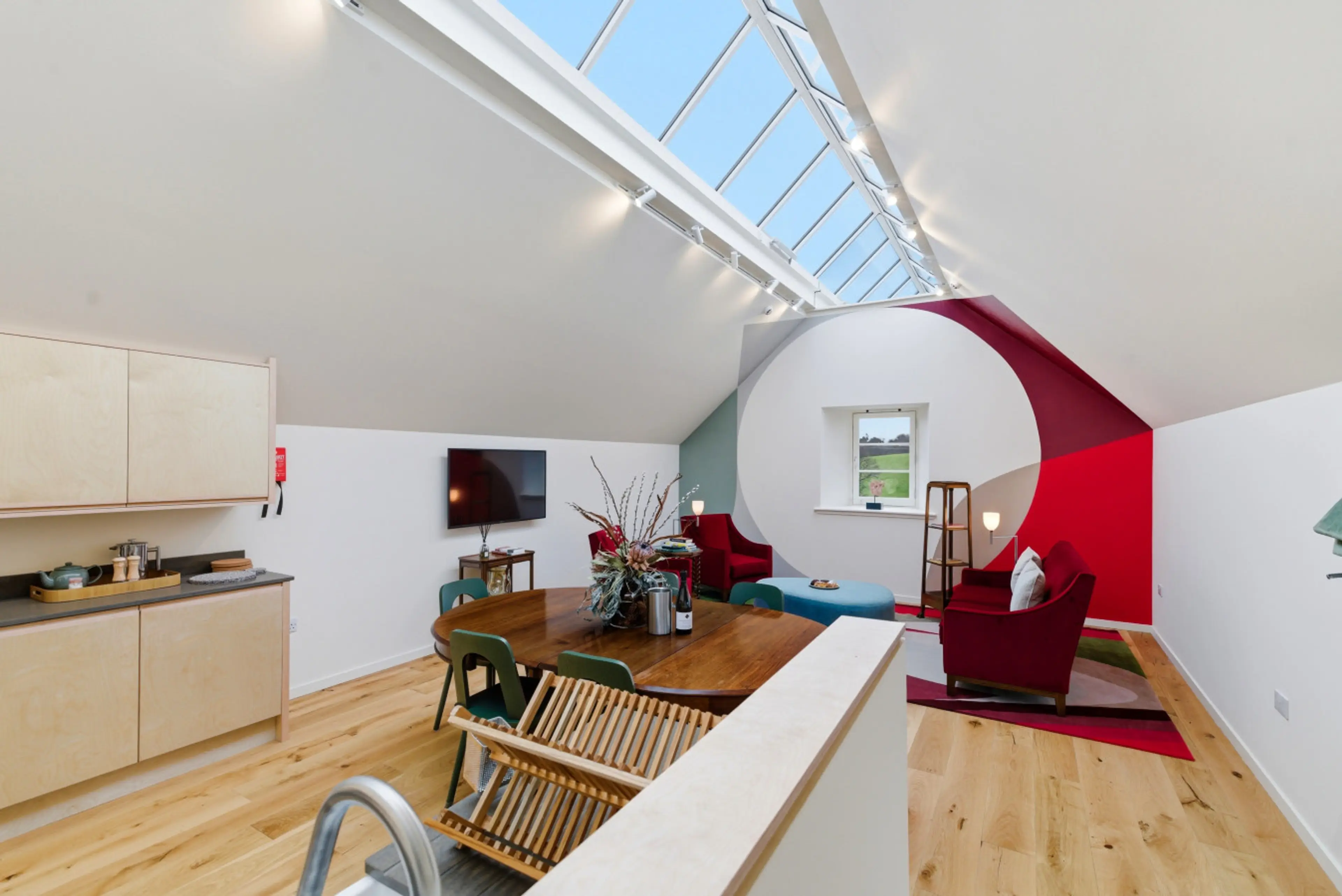 A striking countryside retreat at Papple Steading, The Granary sleeps up to 6 guests and combines dramatic vaulted living space, bold contemporary interiors and a calm rural setting in the heart of East Lothian. With a large open plan kitchen, dining and lounge area, beautifully finished bedrooms, m...